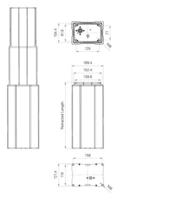 Diese 3-stufige teleskopische Hebekolonne ist für Anwendungen mit Zugantrieb, wie zum Beispiel zur Unterstützung von hängenden medizinischen Geräten, konzipiert.Das dreiseitige Gehäuse sorgt für eine zuverlässige und reibungslose Bewegung, während seine kompakte Bauweise unterschiedliche Schlaglängen aufnimmt, ohne die Stabilität zu beeinträchtigen.
